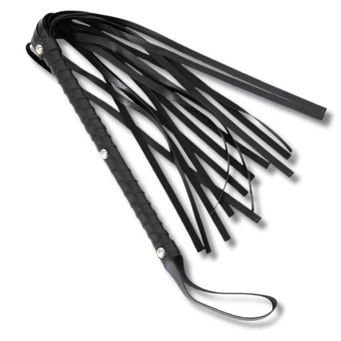 Esse não é um chicote qualquer. Com 60cm de puro estilo, cabo ergonômico com acabamento impecável e tiras que dançam no ar com aquele som que faz o coração acelerar, ele foi feito para quem leva a sério a arte da dominação.