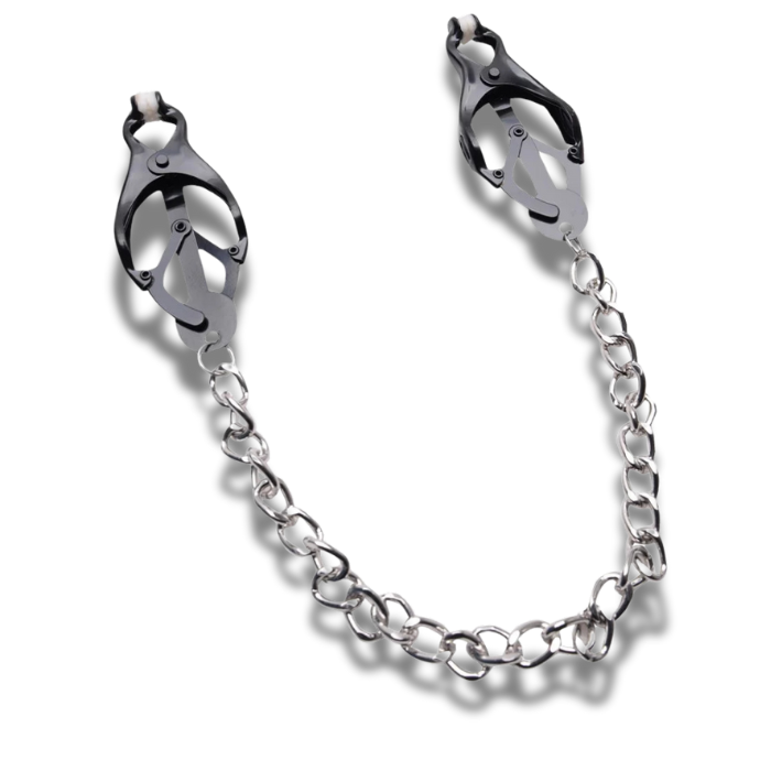 Pra você que quer sair da rotina ou pra você que tem isso como rotina. A linha sado veio para fazer sua relação pegar fogo, trazendo mais sexualidade, fantasia e muito mais tesão para orgasmos intensos. Os Grampos de Mamilo Japonês são muito mais sofisticados e fortes são ferramentas para quem quer descobrir novos prazeres, ao pressionar o bico do peito estimulam os mamilos, deixando as mão livres para outros estímulos intensificando mais ainda o orgasmo. Não se preocupe, eles não machucão. Além de possuírem borracha nas pontas dos grampos, eles possuem um controle de pressão. Esse modelo ainda conta com correntes as quais poderão formar um conjunto com outros acessórios.